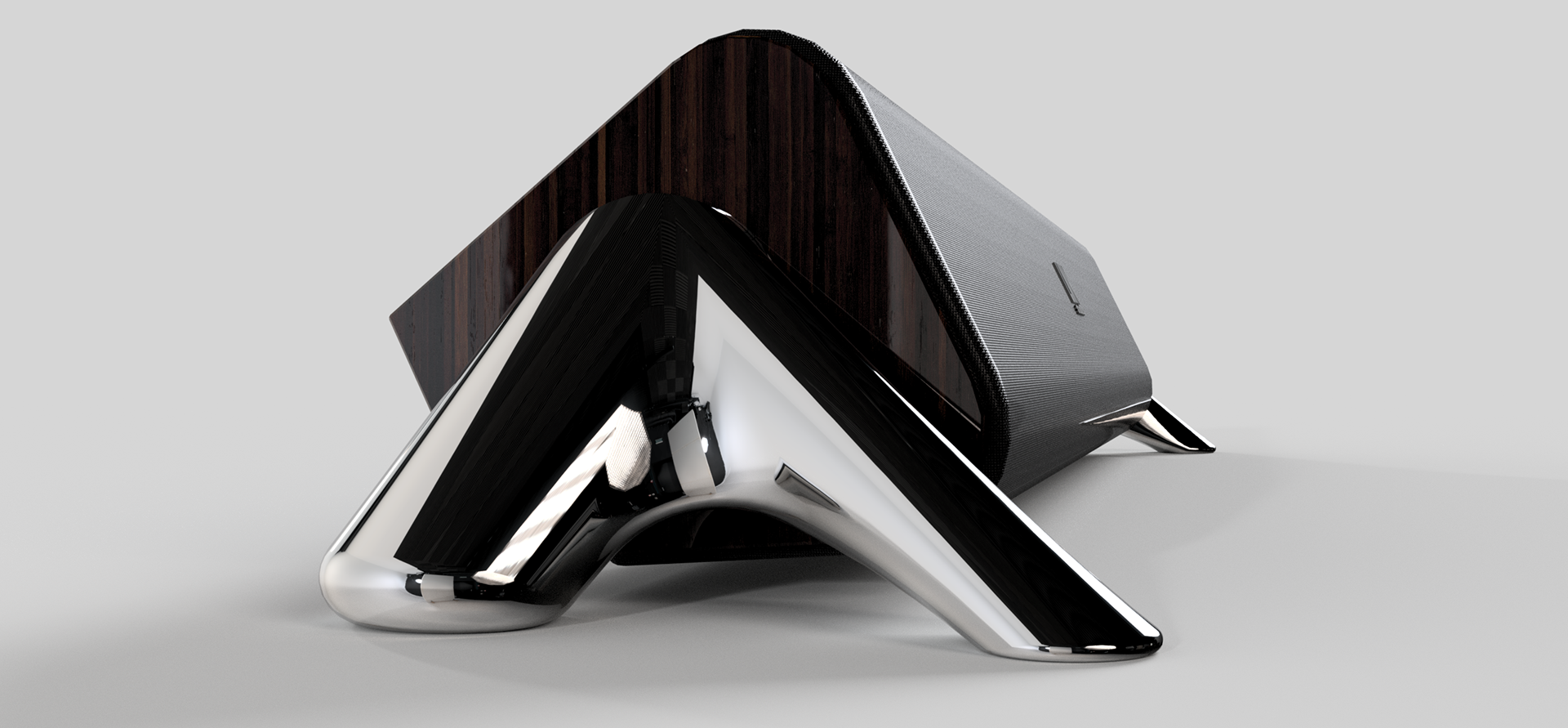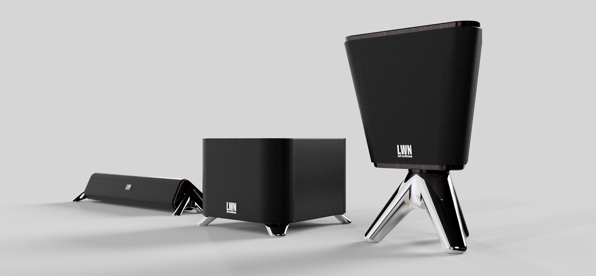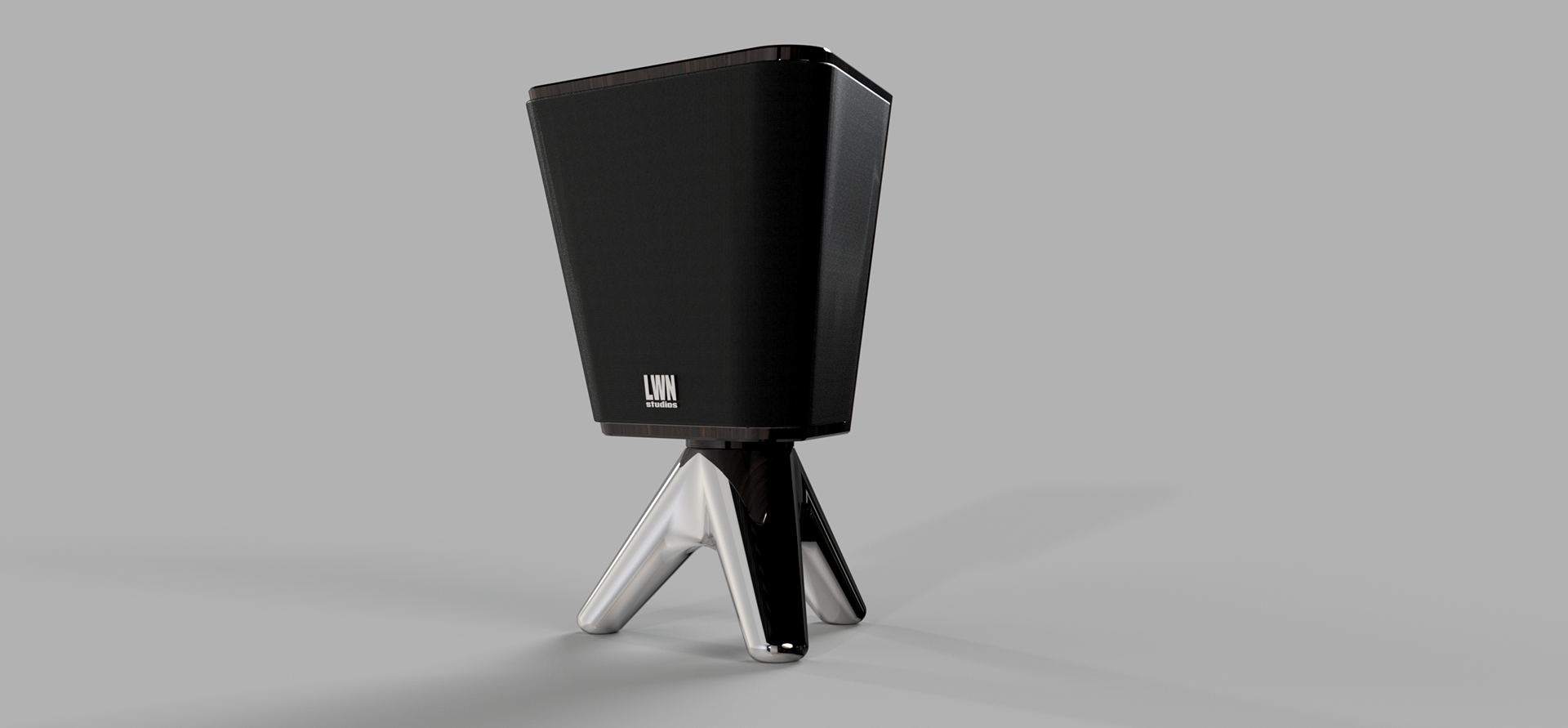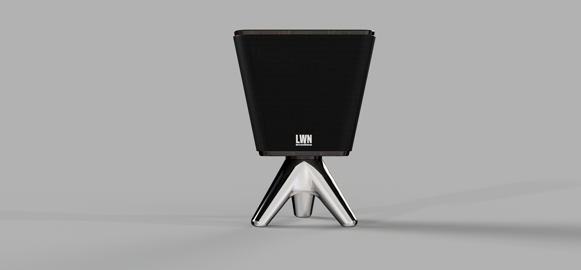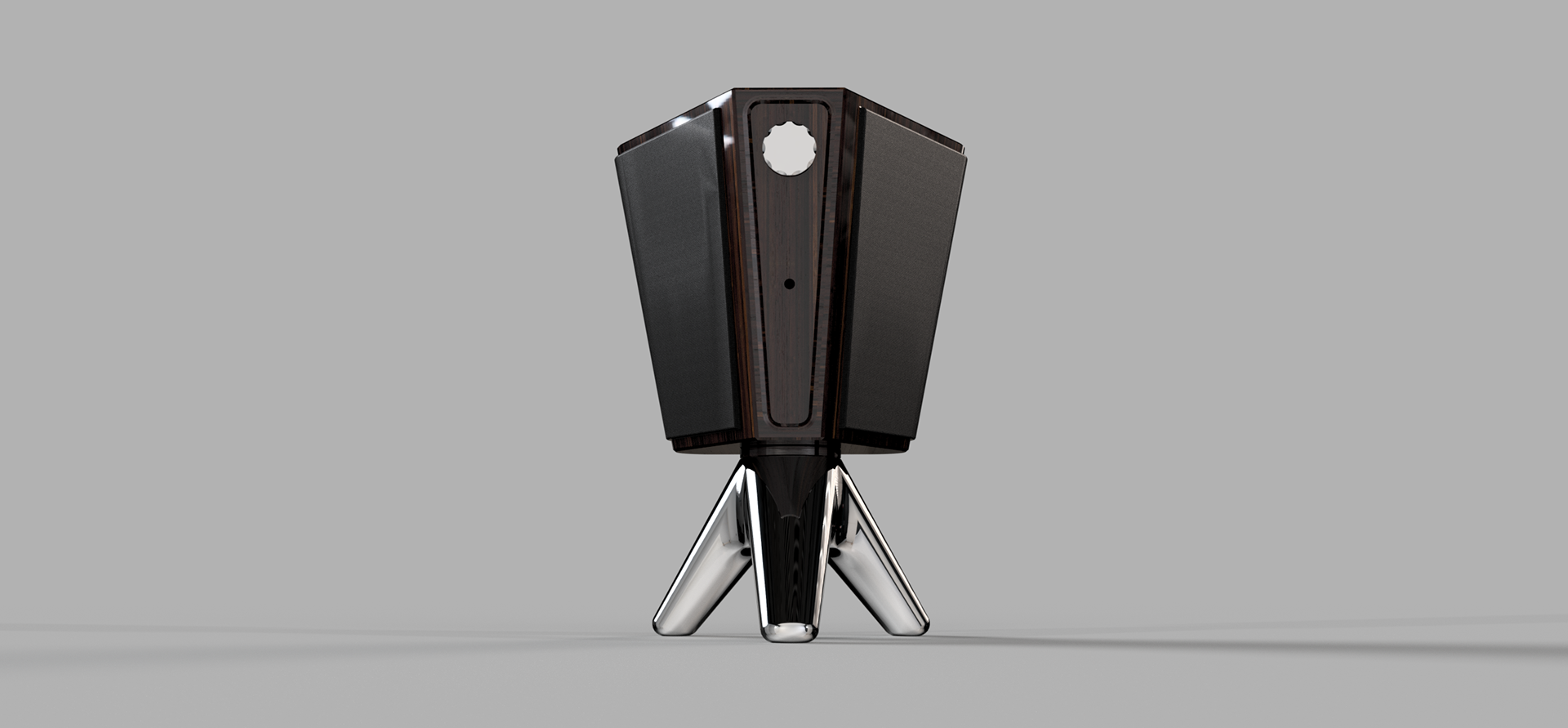 Elevated on a tripod of polished chrome, The Solo is the centerpiece of the collection. This vertical powerhouse uses its unique tapered geometry to project audio with surgical accuracy.