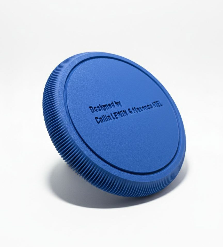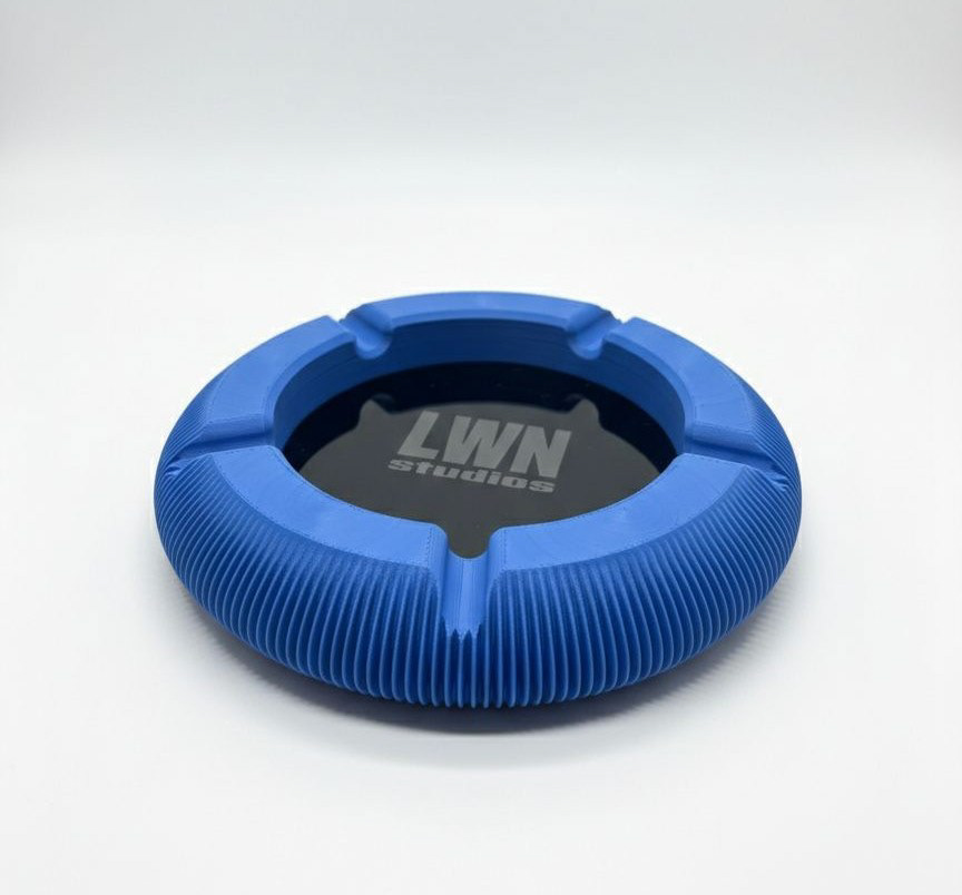 To bring the digital model into the physical space, I utilized the Bambu Lab platform, printing the body with a 15% infill to achieve an optimal balance of structural rigidity and material efficiency. The final refinement lies in the interplay of textures—the matte, ribbed surface of the 3D-printed housing is offset by a precision-cut black glossy acrylic inlay. Each disc is laser-engraved with the LWN Studios logo, providing a sharp, reflective finish that anchors the design.
