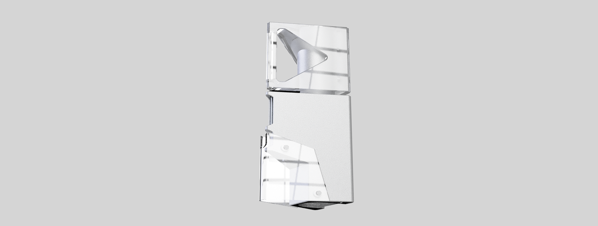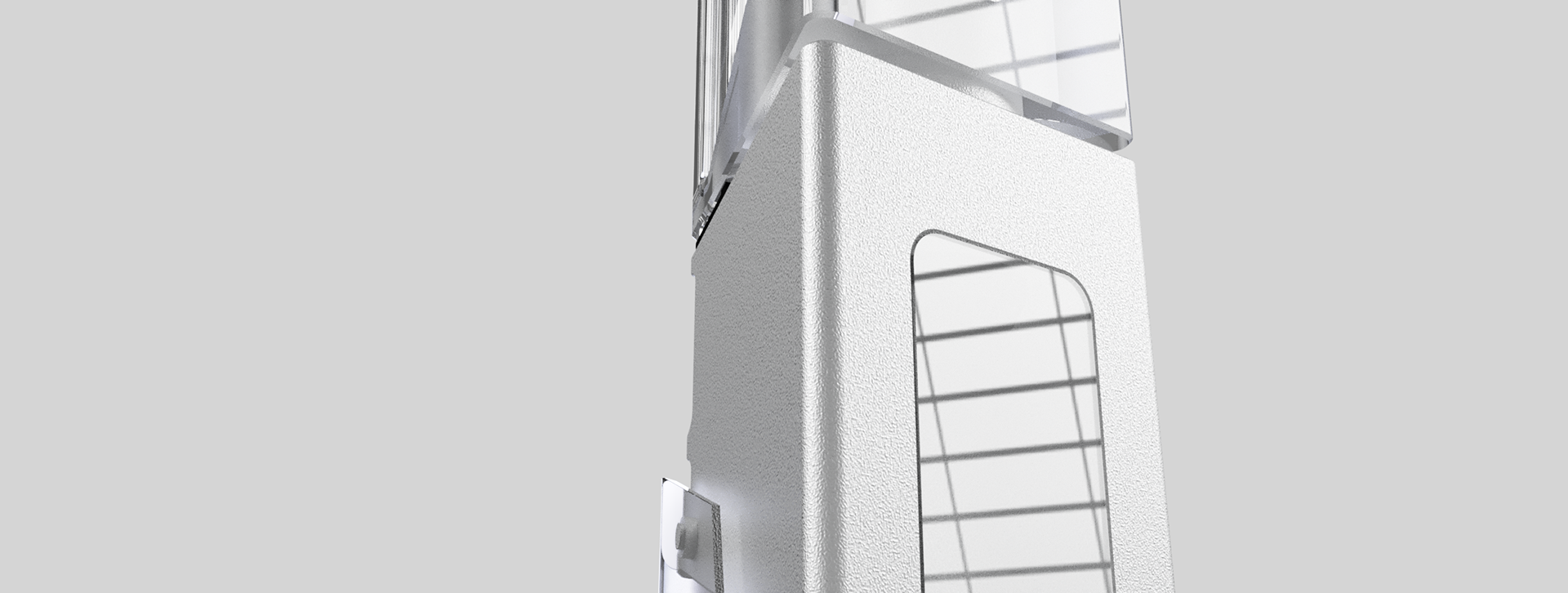 The ground grain reservoir is aligned along a flat surface while the overall body features a triangular shape for enhanced stability, a superior grip, and better handhold.