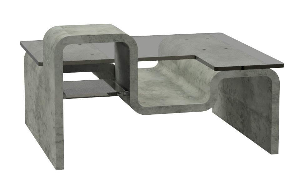 This table was designed for my mother and family, who wanted a bold and distinctive centerpiece for the living room. The design was guided by a series of practical and aesthetic requests: my mother asked for a discreet under–tabletop compartment to store TV remotes and accessories; my father suggested integrating a bookshelf; and together, they envisioned areas suitable for displaying a plant or serving food, drinks, and small snacks.