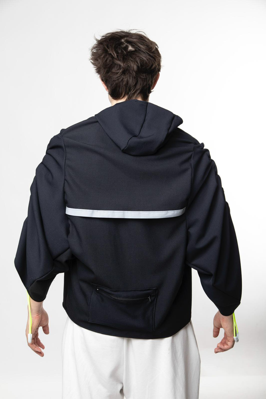 We built our design around the persona of Alex, a 27-year-old chef who runs to find balance. His needs are simple but demanding: a garment that gives him confidence, handles the early morning cold, and adapts as the sun rises—all while being practical enough to hold just his essentials. The resulting piece is a testament to user-centric design—practical, stylish, and unencumbered.
